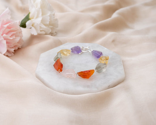 Amethyst, Citrine, Green Amethyst, Carnelian & Rose Quartz Bracelet